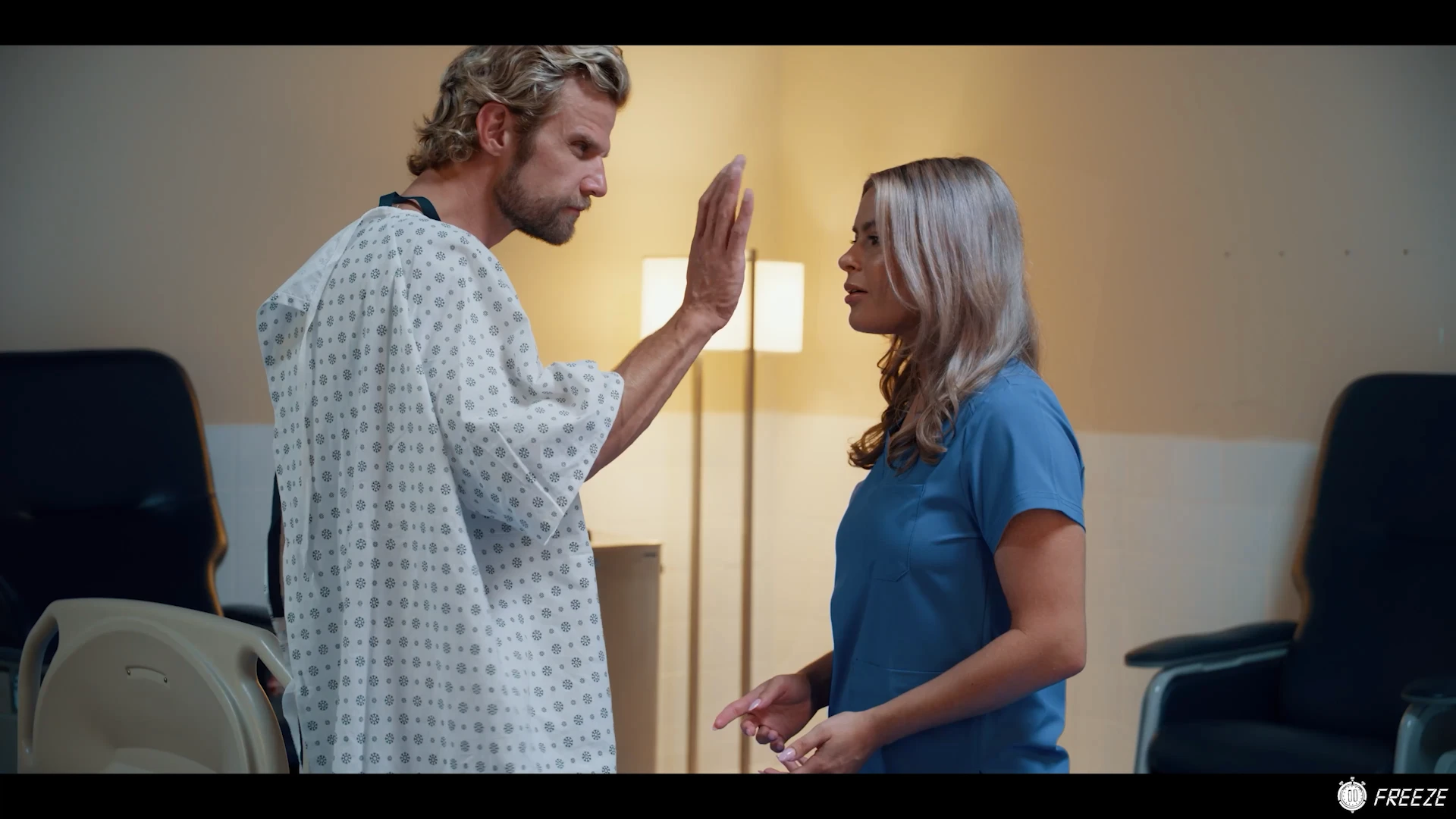 As he’s briefed on the incident by his nurse, Ian gets an unexpected visit from one of his company’s lawyers (Little Puck). She coldly informs Ian that he will not only receive zero compensation, but he will have no choice but to pay for the damages down to the company’s machinery.In a fit of rage, Ian attempts to confront the lawyer.